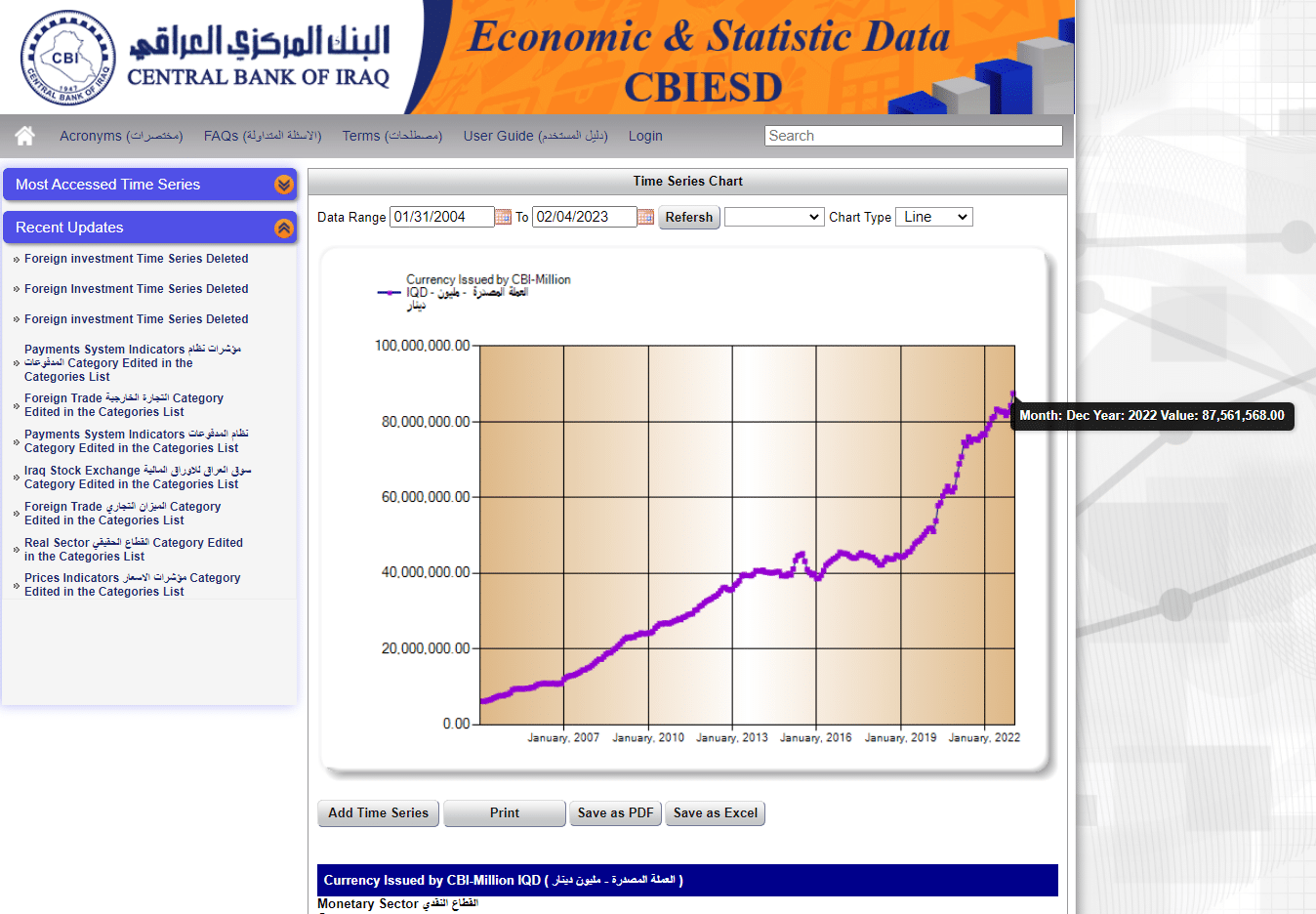 بيانات البنك المركزي العراقي عن الكتلة النقدية المصدرة: تصفح