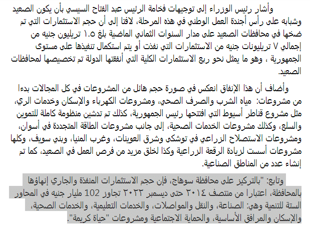 بالرجوع لتصريحات رئيس الوزراء اكتشفنا أن تصريح وليد طوغان “غير دقيق”، إذ بلغ حجم استثمارات سوهاج 102 مليار جنيه وليس 104 مليارات جنيه