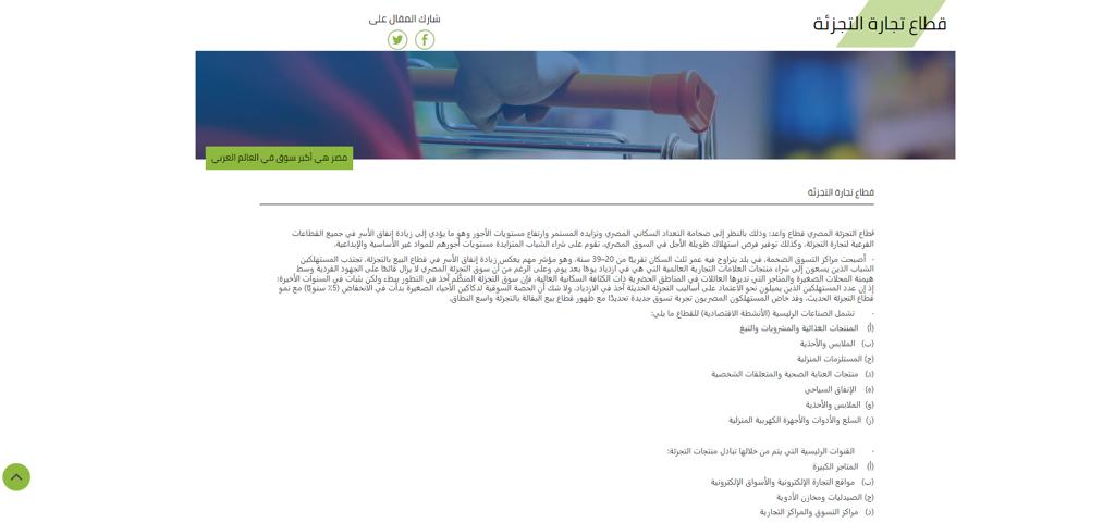 عضو بمجلس النواب المصري يقول إن تجارة التجزئة تتجاوز 1.5 تريليون جنيه وتمثل 21% من الناتج المحلي ويعمل بها من 20 لـ25 مليون فردًا.. وجاء التصريح بعد إعلان الدولة التخارج من ذلك النشاط فرجعنا للبيانات الحكومية للتحري