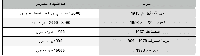 وفي ذات السياق نشرت صحيفة Los Angeles Times عام 1991 بالتعاون مع وكالة أنباء أسوشيتد برس الأمريكية تحليلًا للحروب في الشرق الأوسط، وثقت فيه شهداء مصر خلال حروبها مع إسرائيل كما يلي: