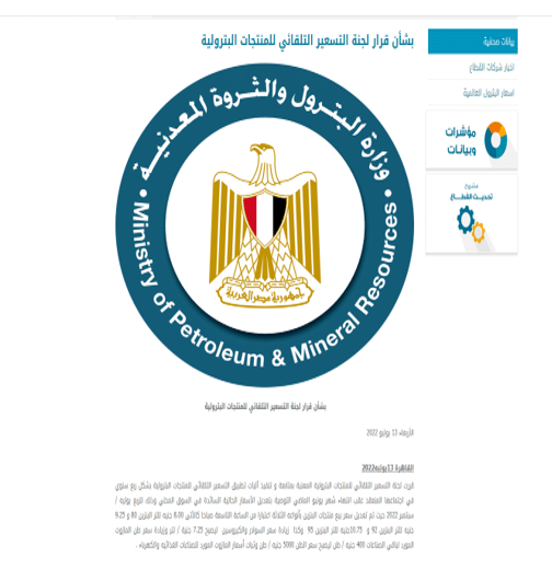 وشهدت أسعار الوقود والمحروقات ارتفاعًا في أسعارها خلال السنوات الأخيرة، والتي بدأت في عام 2016، فزاد بنزين 80 وقتها من 1.6 جنيه مصري للتر إلى 2.35 جنيه بزيادة قدرها 75 قرشا، وبنزين 92 من 2.6 جنيه إلى 3.5 جنيهات للتر، بزيادة 90 قرشًا، والسولار من 1.6 جنيه إلى 2.35 جنيه للتر، بزيادة 55 قرشًا، وغاز السيارات من 1.1 جنيه إلى 1.6 جنيه للتر، بزيادة 50 قرشًا، ونُشر ذلك عبر مواقع "المصري اليوم، واليوم السابع". [gallery jnewsslider_title="مواقع "المصري اليوم واليوم السابع"" columns="2" size="full" ids="11473,11474"] وكانت أخرها في 13 يوليو 2022، قررت لجنة التسعير التلقائي للمنتجات البترولية المعنية بمتابعة وتنفيذ آليات تطبيق التسعير التلقائي للمنتجات البترولية بشكل ربع سنوي، تعديل سعر بيع منتجات البنزين بأنواعه الثلاثة كالأتى 8 جنيهات للتر البنزين 80 و9.25 جنيهات للتر البنزين 92 و 10.75 جنيهات للتر البنزين 95، وكذا زيادة سعر السولار والكيروسين ليصبح 7.25 جنيهات للتر وزيادة سعر طن المازوت المورد لباقي الصناعات 400 جنيه للطن ليصبح سعر الطن 5000 جنيه، وثبات أسعار المازوت المورد للصناعات الغذائية والكهرباء.