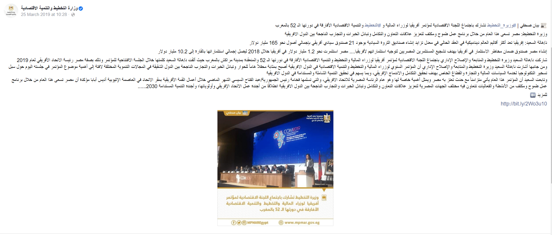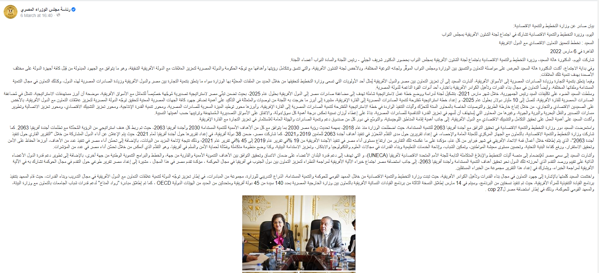 بيان وزارة التخطيط والتنمية الاقتصادية المصرية