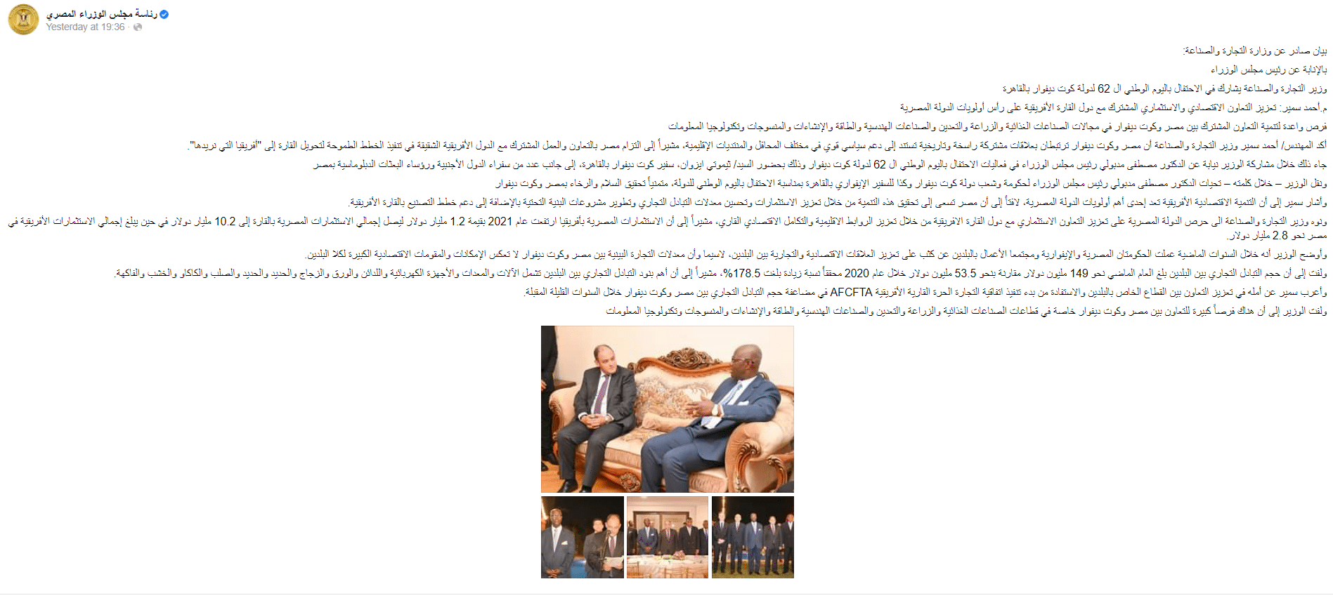 بيان صادر عن وزارة التجارة والصناعة المصرية
