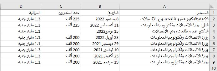 بالرجوع للبيانات السابقة لوزارة الاتصالات وللتصريحات السابقة للوزير اكتشفنا "تضاربًا" بينها في تكلفة التدريب وعدد المتدربين