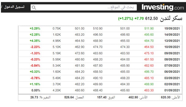 موقع أسواق للمعلومات.. أسعار السكر الأبيض في بورصة لندن عدنا بالبحث عن أسعار السكر في شهر سبتمبر 2021، فوجدنا أن السعر الأدنى كان 462.90 دولارًا والسعر الأعلى 620.30 دولارًا، خلافًا لما صرح به مدير عام الديوان التونسي للتجارة إلياس بن عامر بإن سعر الطن ارتفع من 360 دولارًا إلى 700 دولار بين سبتمبر 2021 وسبتمبر 2022.