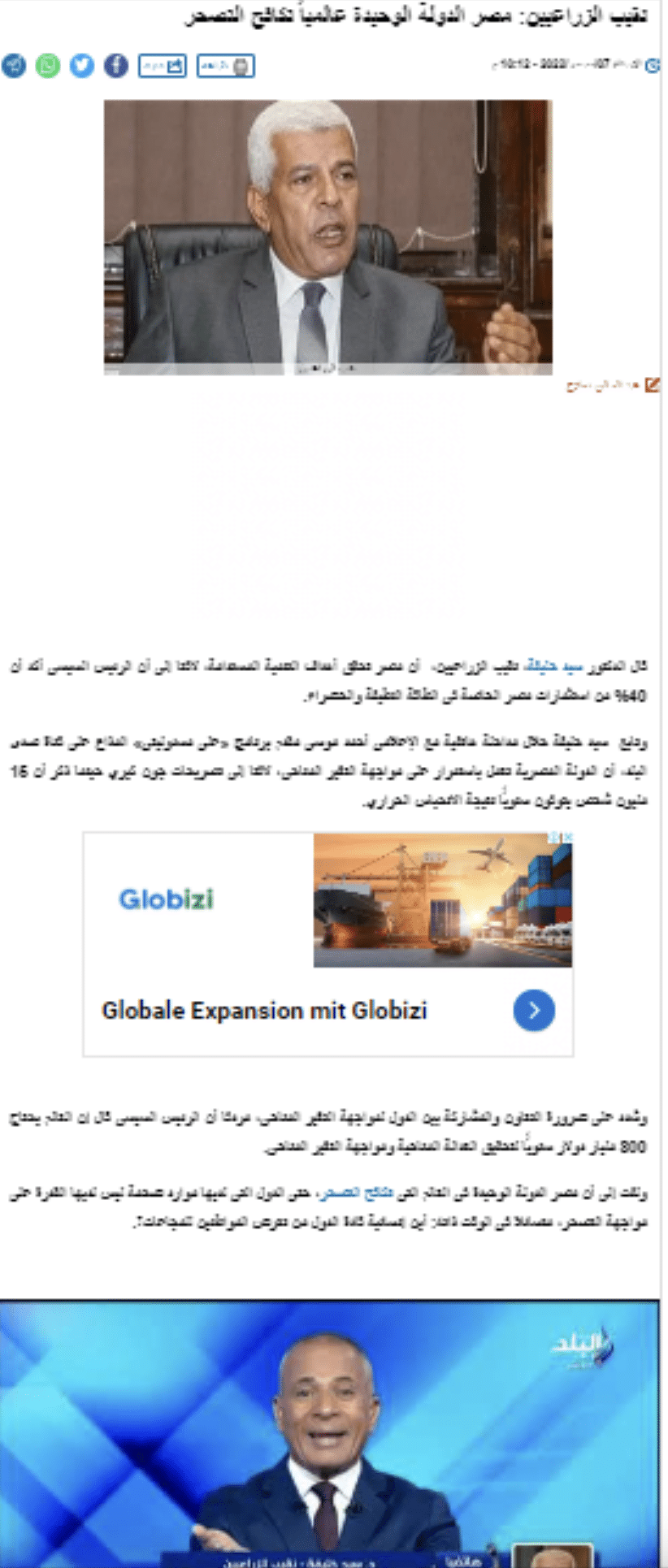 نقيب الزراعيين المصريين يقول إن مصر هي الدولة الوحيدة في العالم التي تكافح التصحر.. وتزامن تصريحه مع استعدادات مصر لاستضافة مؤتمر المناخ العالمي فقررنا التحري