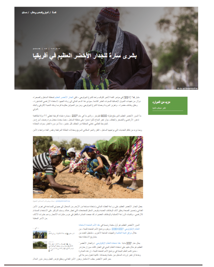 بيان الأمم المتحدة عن الجدار الأخضر العظيم بإفريقيا
