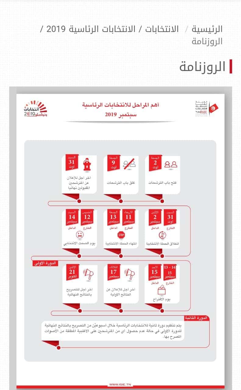 بحسب المراحل الزمنية للانتخابات "الرزنامة" التي نشرتها هيئة الانتخابات، فإن الدورة الأولى للانتخابات الرئاسية عقدت يوم 15 سبتمبر، بينما الأجل النهائي لإعلان النتائج هو يوم 17 سبتمبر، أي بعد يومين على الأكثر من إجراء الانتخابات.