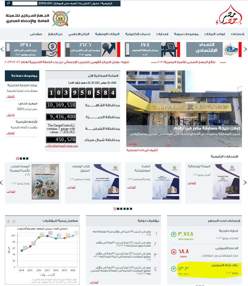 بيان هيئة قناة السويس وظهرت أهمية مراجعة تلك البيانات، لأن الجهاز المركزي للتعبئة العامة والإحصاء هو الجهاز الرسمي للإحصاء في مصر، والذي يقوم بجمع ومعالجة وتحليل ونشر كل البيانات الإحصائية والتعداد السكاني، وهو الجهة الرسمية لتوفير البيانات والإحصاءات والتقارير، والتي تدعم جهات اتخاذ القرار في الدولة وكذلك كل من الباحثين والصحفيين.