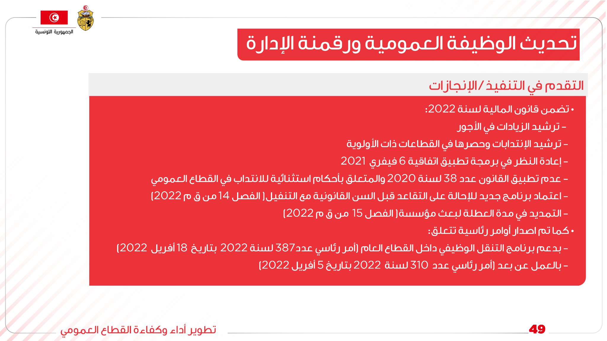 خطّة الحكومة في تطوير أداء القطاع العمومي وتحديث الوظيفة العموميّة