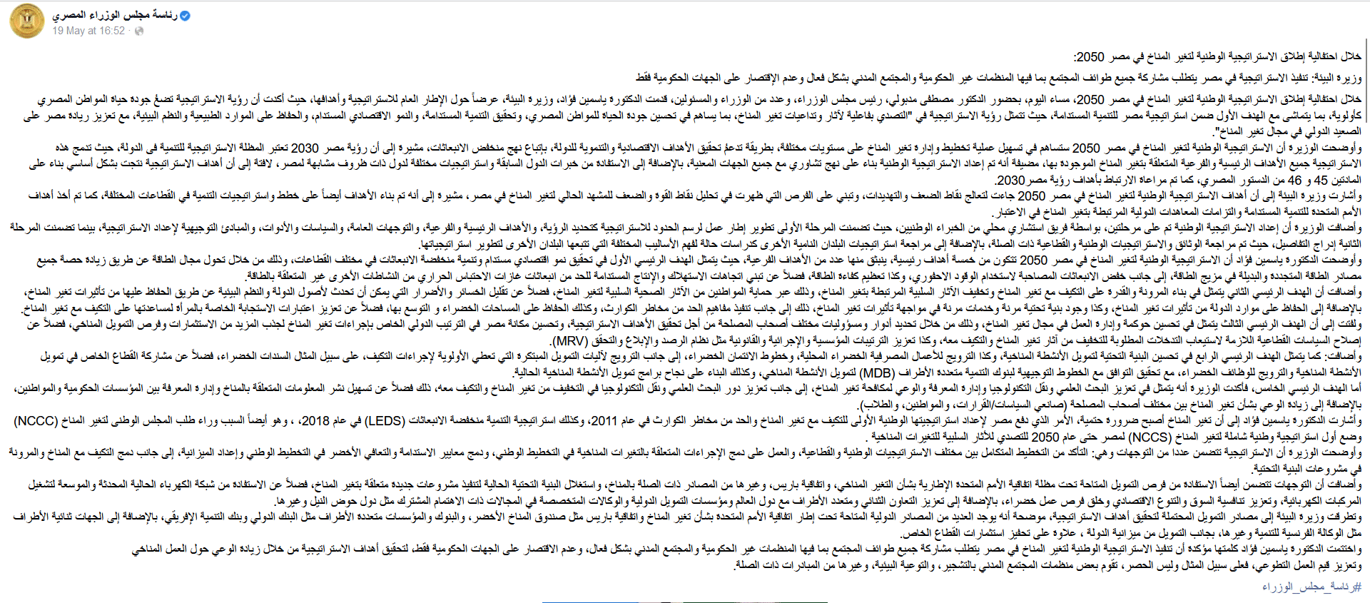 بيان إطلاق الاستراتيجية الوطنية لتغير المناخ في مصر 2050