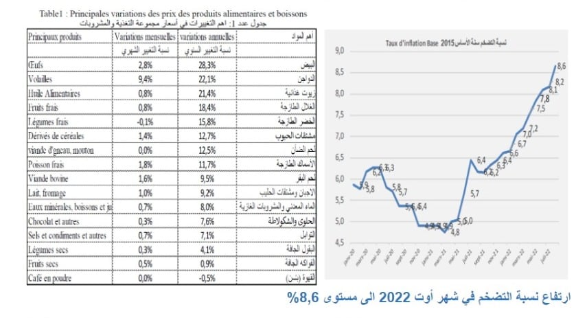 ارتفاع نسبة التضخم في أغسطس 2022 إلى 8.6%