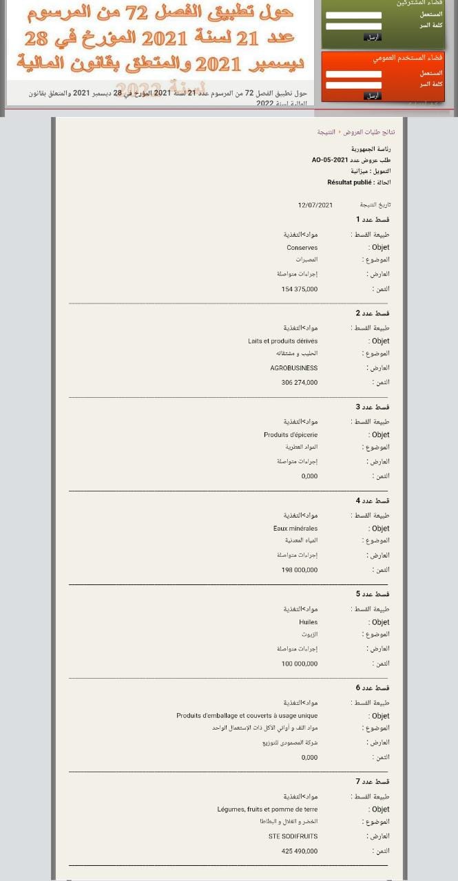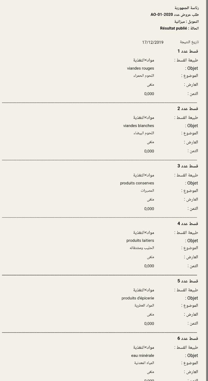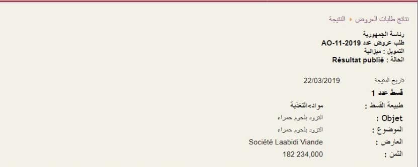 رجعنا من خلال ذات الموقع، لصفقات مشابهة حول التزود بمواد غذائية لصالح رئاسة الجمهورية ووجدنا التالي: