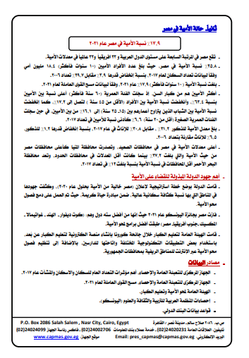 الإحصاء: نسبة الأمية في مصر بلغت 17.9% في 2021.