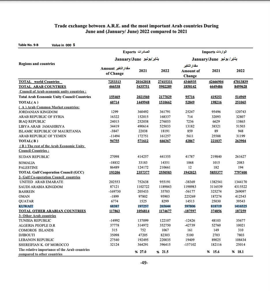 الإحصاء: التبادل التجاري بين مصر والكويت بلغ 2 مليار و234 مليون دولارًا في 2020.