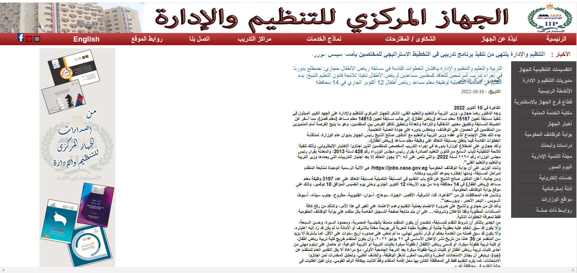 بيان الجهاز المركزي للتنظيم والإدارة وأعلن وزير التربية والتعليم، خِلال الجلسة العامة لمجلس النواب في 18 أكتوبر 2022، اعتماد 300 مليون جنيه للتعاقد مع معلمين متطوعين بالحصة لسد العجز في 2022، وهو ما نُشر بمواقع "صدى البلد، ومصراوي". [gallery jnewsslider_ads="true" jnewsslider_title="تصريحات وزير التربية والتعليم المصري" columns="2" size="full" ids="12914,12915"]