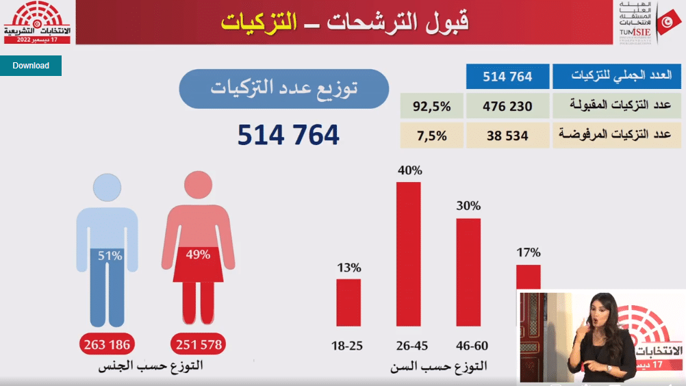 حصيلة قبول تزكيات المترشّحين للانتخابات التشريعيّة - ديسمبر 2022