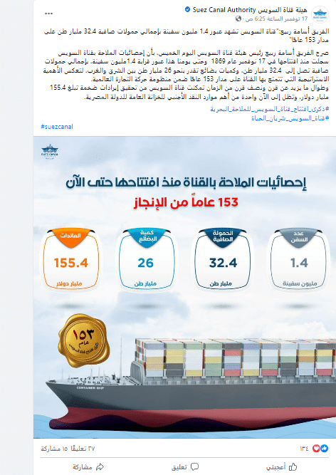 رئيس هيئة قناة السويس يقول إن قناة السويس الجديدة التي تم افتتاحها عام 2015 أدت إلى مضاعفة إيرادات القناة السنوية للتجاوز 7 مليار دولار سنوياً، ومع مرور 153 عامًا على افتتاح قناة السويس للملاحة البحرية قررنا التحري.