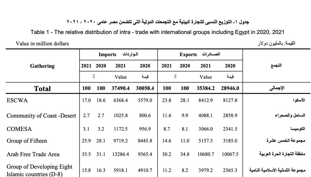 وأظهرت النشرة السنوية للتجارة البينية مع التجمعات الدولية 2021، الصادرة عن الجهاز المركزي للتعبئة العامة والإحصاء، بلوغ إجمالي حجم الصادرات بين مصر ودول الكوميسا 3 مليارات 66 مليون دولارًا في عام 2021، مقابل 2 مليار و341.5 مليون دولارًا في عام 2020، بنسبة زيادة قدرها 30.9%. وبلغت واردات دول الكوميسا من مصر مليار و172.5 مليون دولارًا في عام 2021، مقابل 956.9 مليون دولارًا في عام 2020، بنسبة زيادة قدرها 22.5%.