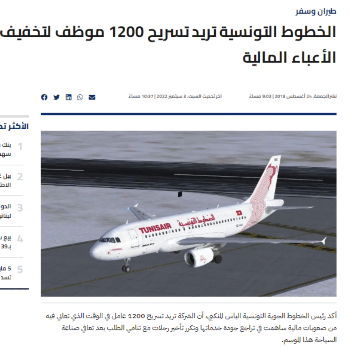 المؤشرات الماليّة مفصلة لشركة الطيران التونسية