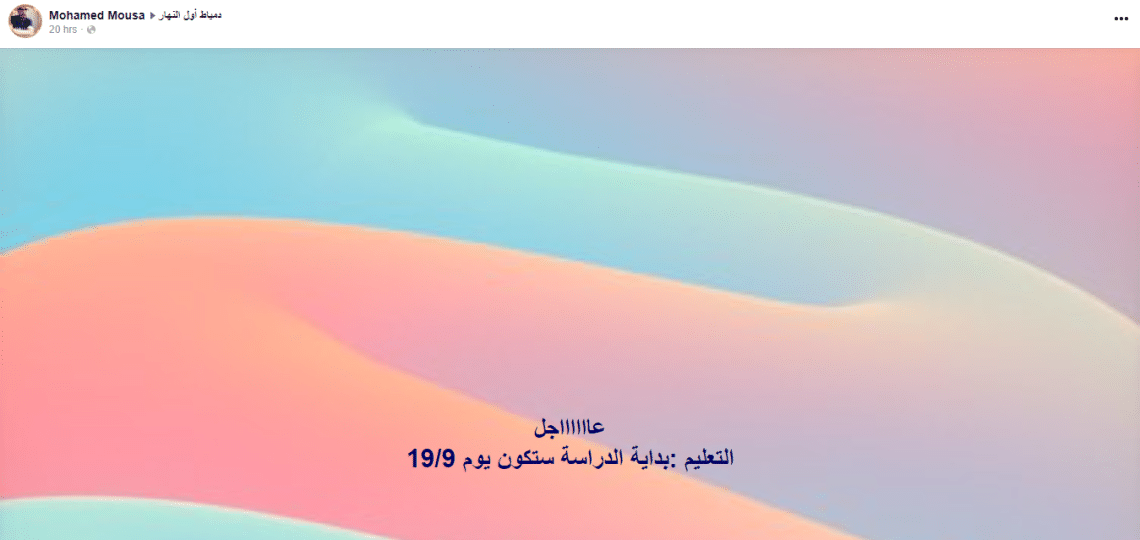 هل سمعت شائعة عن إعلان وزارة التربية والتعليم بدء الدراسة بالعام الجديد يوم 19 سبتمبر المقبل؟