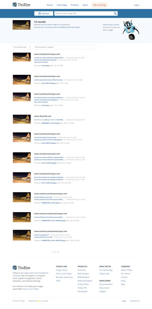 للتأكد من صحة الصورة، أجرينا بحثًا عكسيًا على الصورة، من خلال استخدام موقع TinEye للتحقق مما إذا كان تم نشرها سابقًا، وتبين عبر البحث أنه تم نشرها عدة مرات في تواريخ مختلفة.