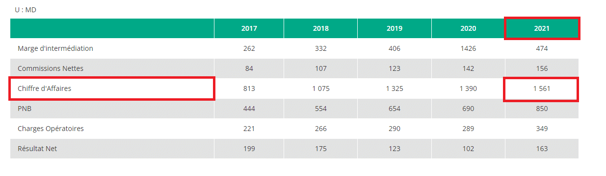 وتبين أحدث أرقام للبنك الوطني الفـلاحي المتوفرة على الموقع الرسمي للبنك، والتي تعود لسنة 2021 أن رقم معاملات البنك يساوي 1561 مليون دينارًا.