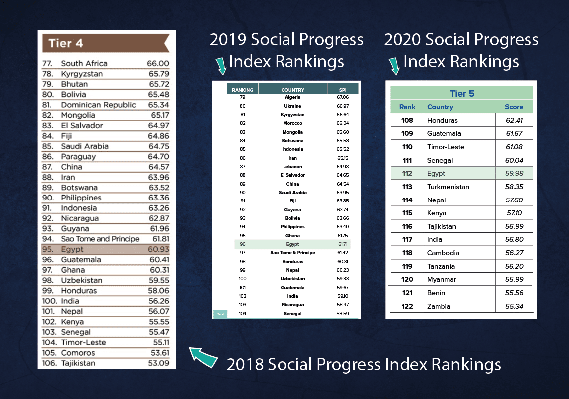 مصر احتلت الترتيب رقم 112 بين دول العالم عام 2020 في مؤشر التقدم الاجتماعي