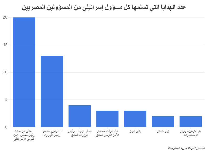 عدد الهدايا التي منحها كل مسؤول مصري لمسؤولين إسرائيليين