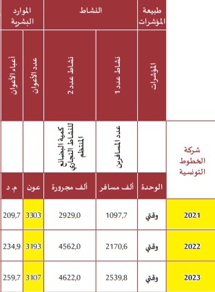 ويقدّم تقرير المنشآت العمومية لسنة 2025 أرقامًا أولية لعدد موظفي الخطوط التونسية عن السنوات 2021 و2022 و2023، مع الإشارة إلى أن رقم سنة 2021 قريب من أرقام مؤشرات النشاط، لكنه غير مطابق لها.