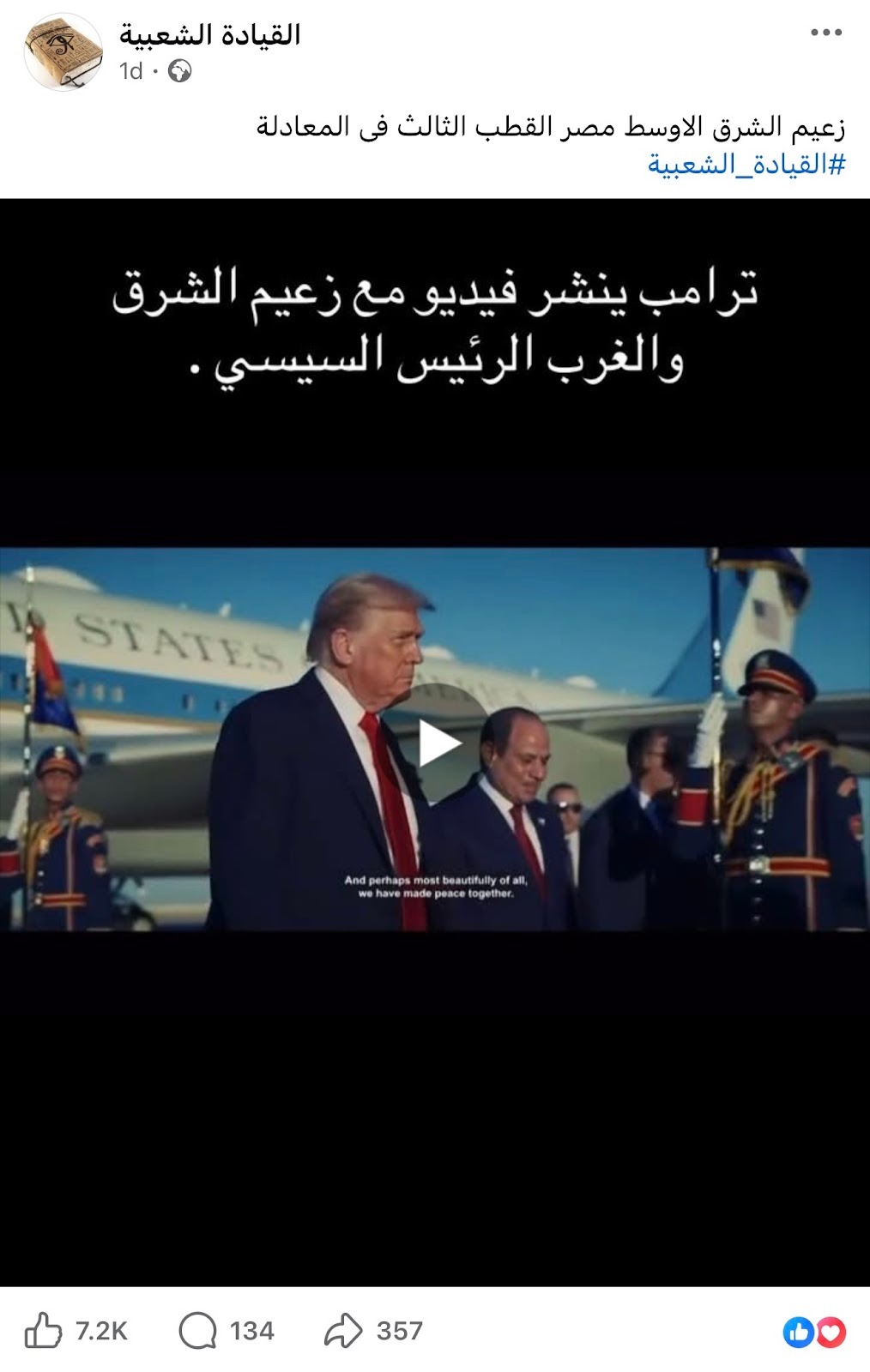 فيديو بعنوان: ترامب ينشر فيديو مع زعيم الشرق والغرب الرئيس السيسي.. زعيم الشرق الأوسط، مصر القطب الثالث في المعادلة.