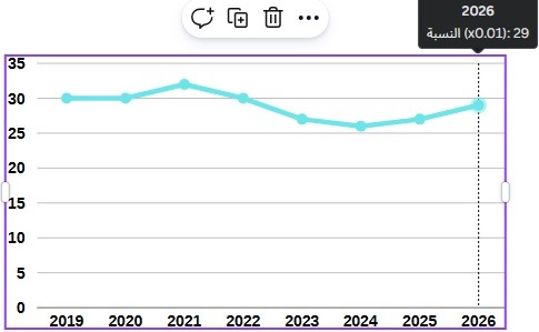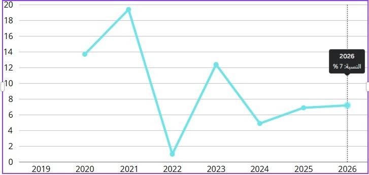 تطور الميزانية من سنة 2019 إلى 2026 على مستوى النسبة من الإجمالي: