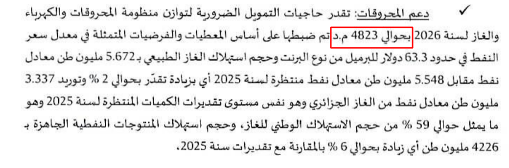 إحنا الدعم في قانون المالية وفي الميزانية تم في حدود 14 ألف مليار، 7500 محروقات، 3800 مواد استهلاكيّة، و700 مليار اللي هو النقل، كان تعمل اجماع 14 ألف مليار موجهة للدعم.
