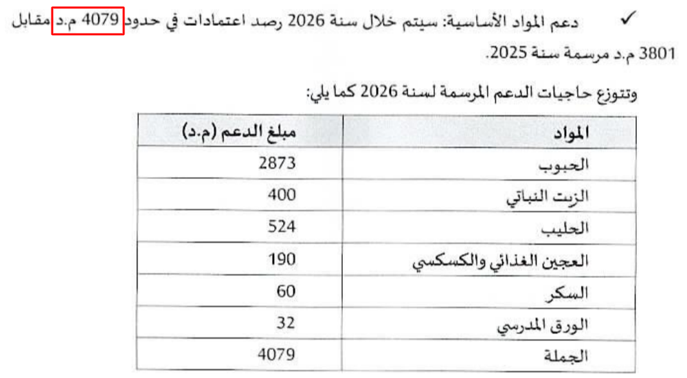 يُشار إلى أنّه من المنتظر أن تمثّل نفقات الدعم 15.4% من جملة نفقات ميزانية الدولة في سنة 2026، مقابل 5.2% من الناتج المحلي الإجمالي لذات السنة.