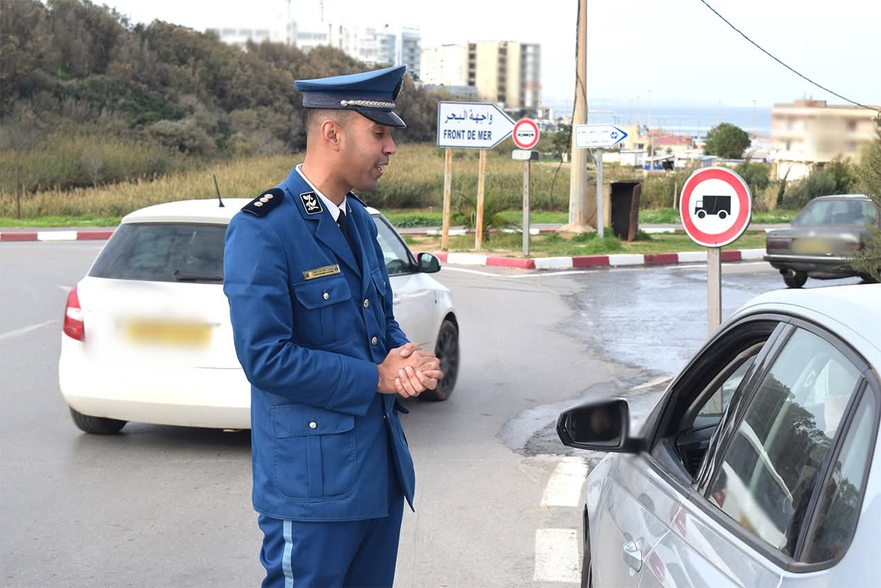 لاحظنا أيضًا شعار الشرطة على الكتف وخط أصفر أسفل اليد والخط الأبيض الذي يرمز إلى رتبة الضابط، كل هذه العناصر لا تتطابق مع البدلة الرسمية للشرطة الجزائرية.