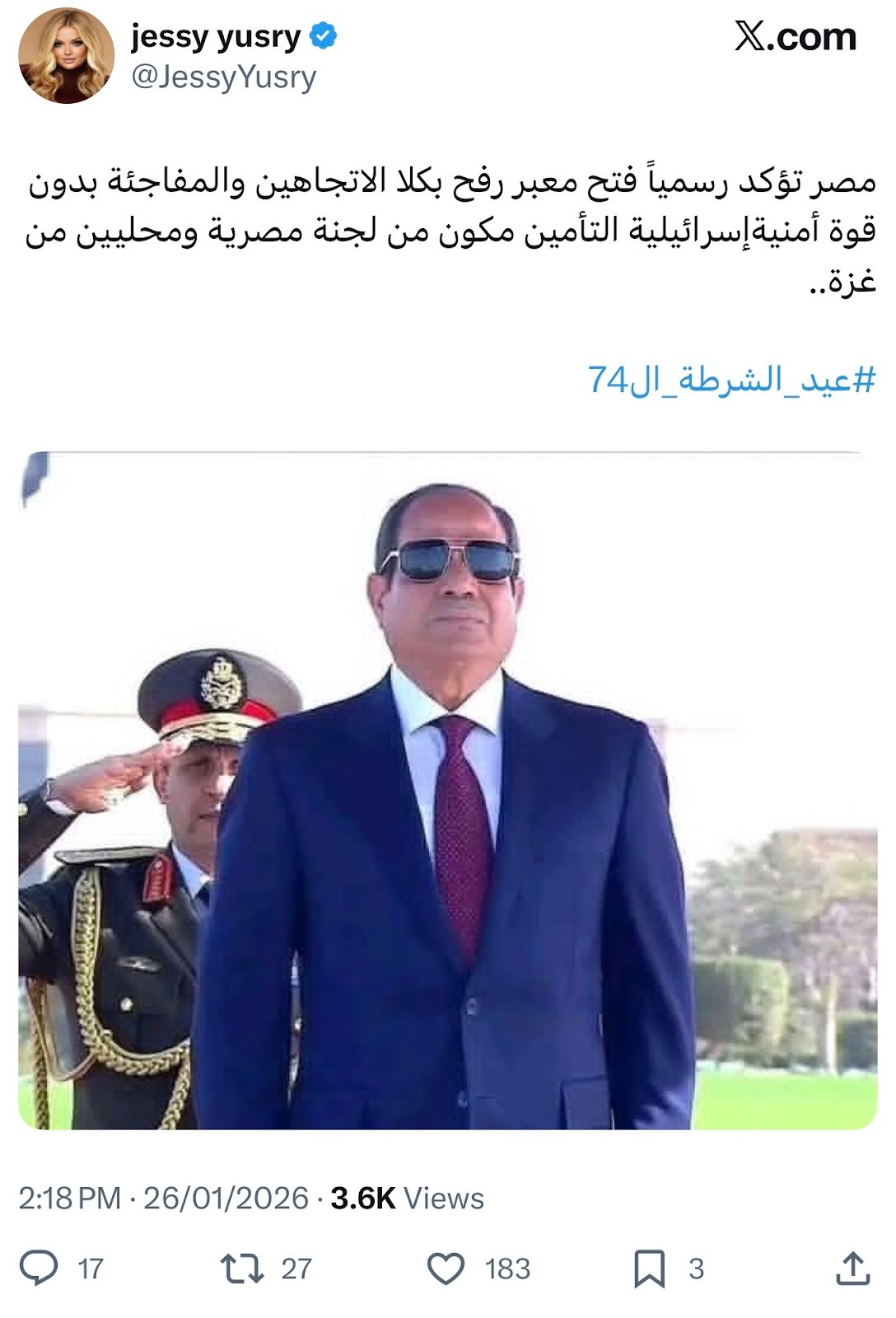 مصر تؤكد رسمياً فتح معبر رفح بكلا الاتجاهين، والمفاجئة بدون قوة أمنية إسرائيلية، التأمين مكون من لجنة مصرية ومحليين من غزة.