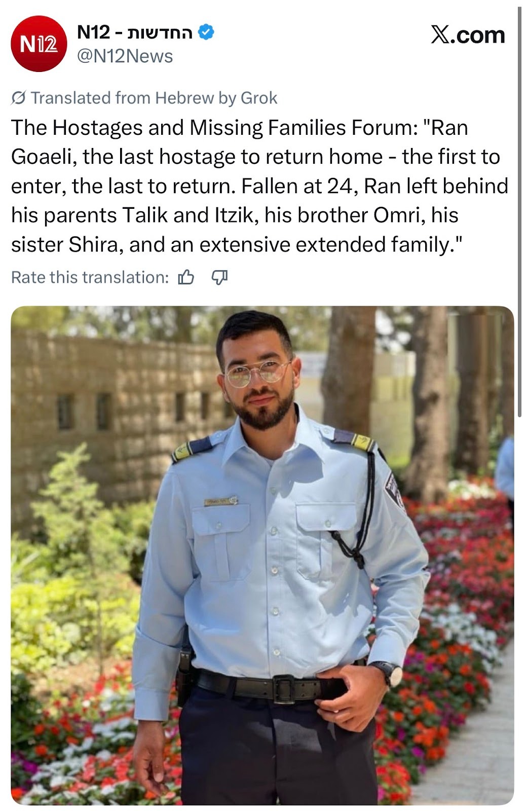 ومنذ ساعات أعلن مكتب نتنياهو وقناة 12 العبرية، عن العثور على جثمان آخر رهينة إسرائيلية الرقيب "ران غفيلي".