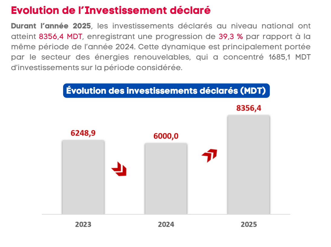 بالبحث في أصل النسبة التي صرح بها المدعي ونسبها لتطور الصادرات وجدنا أنها تخص نسبة تطور الاستثمارات المصرح بها على المستوى الوطني والتي بلغت 8356.4 مليون دينار بنسبة تطور 39.3% مقارنة بسنة 2024، و33.7% مقارنة بسنة 2023. وذلك بحسب تقرير الهيئة التونسية للاستثمار لسنة 2025.