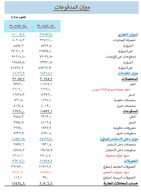 وتعتمد مصر على 5 مصادر للنقد الأجنبي، وهي كالتالي: الصادرات، وتحويلات المصريين العاملين بالخارج، والاستثمار الأجنبي المباشر، وإيرادات السياحة، وإيرادات قناة السويس، بحسب بيانات البنك المركزي، ووفقًا لبيان أداء ميزان المدفوعات الصادر عن البنك لعام 2024 ــ 2025.
