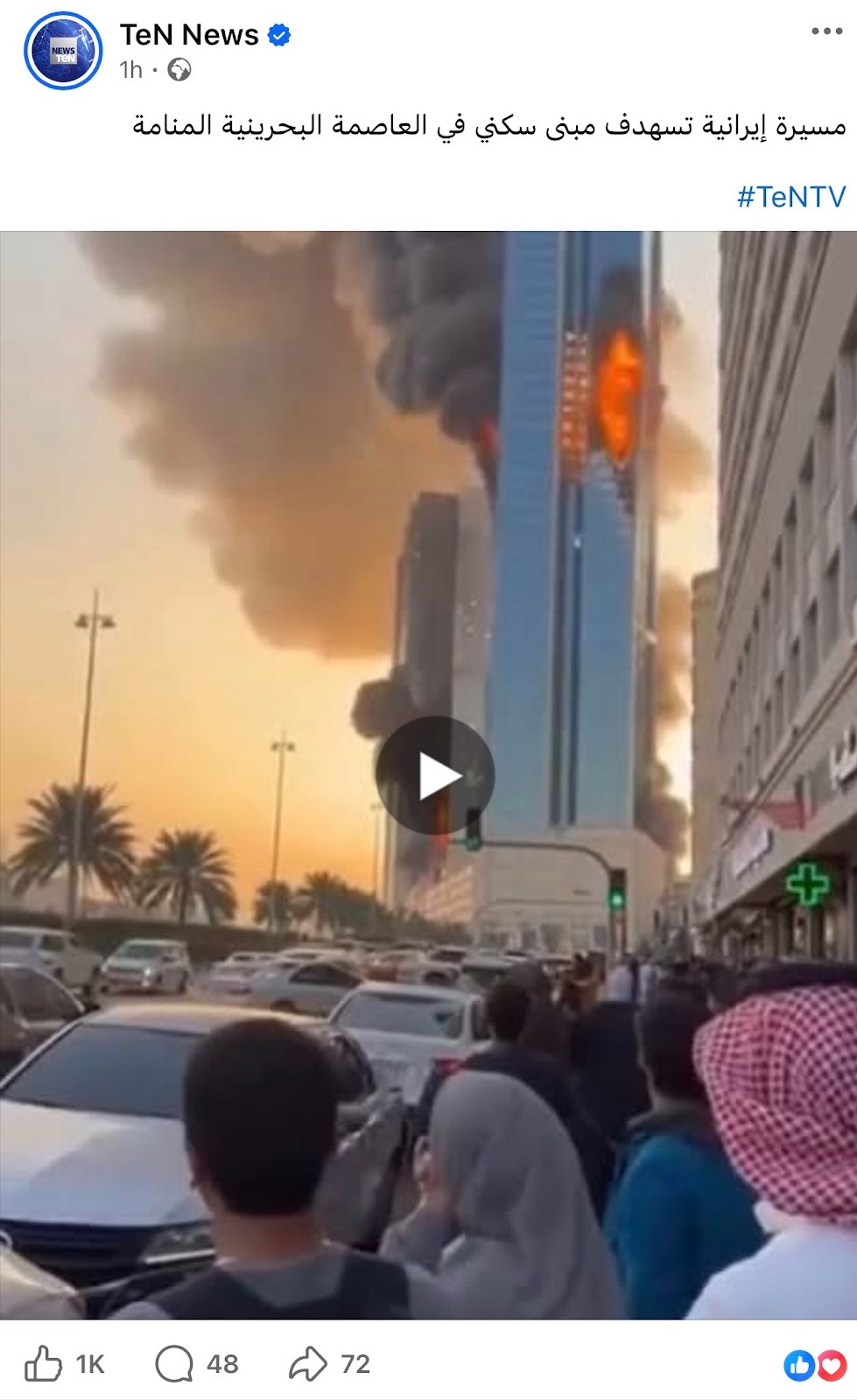 تتبع فريق "تفنيد" الفيديو المتداول على مواقع إخبارية مثل "ten news"، و"الأخبار الجزائرية العربية"، و"بريس إكسبريس"، بتاريخ 2 مارس 2026، بشأن استهداف مسيرة إيرانية لمبنى سكني في العاصمة البحرينية المنامة، ووجد أنه "مضلل"، وذلك بالبحث العكسي عن الفيديو.