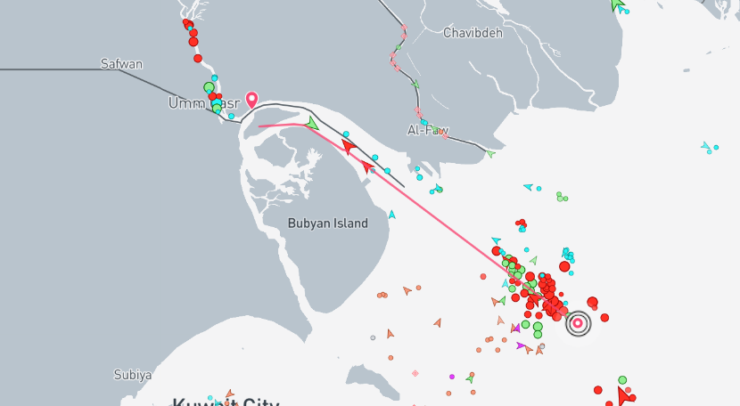 عند البحث عن السفن المتواجدة في المياه الداخلية العراقية وقرب ميناء "خور الزبير" تبين وجود 7 ناقلات نفط ليس من بينها ناقلة تحمل علم البهاما.