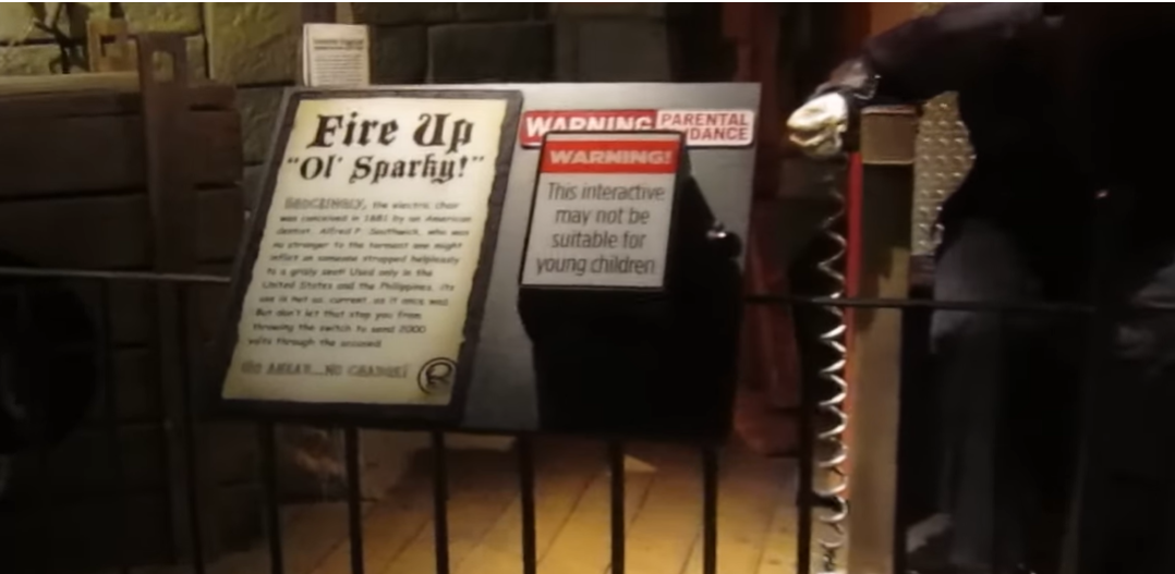 ويوجد بالفيديو المتداول صورة توضح وجود اسم (Alfred P. Southwick)، وهو صاحب فكرة الإعدام بالكرسي الكهربائي في عام 1881، والتي اعتمدت في نيويورك عام 1888، ونفذت أول عملية إعدام بهذه الطريقة عام 1890 بحق ويليام كملر (William Kemmler).