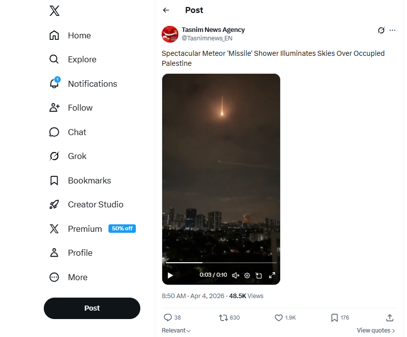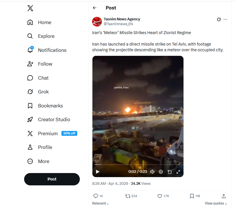 تتبع فريق "تفنيد" الفيديوهات التي نشرتها وكالة أنباء "تسنيم" الإيرانية الرسمية، بخصوص القصف الإيراني على إسرائيل والطائرة الأميركية يوم 4 أبريل 2026، ووجد أنها "مضللة"، وفقًا للبحث العكسي.