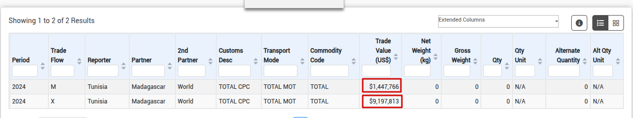 ولمزيد التحقق، تثبتنا من قيمة المبادلات التجارية بين البلدين وفق قاعدة بيانات موقع UN Comtrade التابع للأمم المتحدة، فوجدنا أن آخر الأرقام الموجودة تعود لسنة 2024، وهي تتوافق مع أرقام المعهد الوطني للإحصاء، حيث بلغت قيمة الصادرات التونسية نحو مدغشقر 9.1 ملايين دولار في حين بلغت الواردات 1.4 مليون دولار بإجمالي 10.5 ملايين دولار.