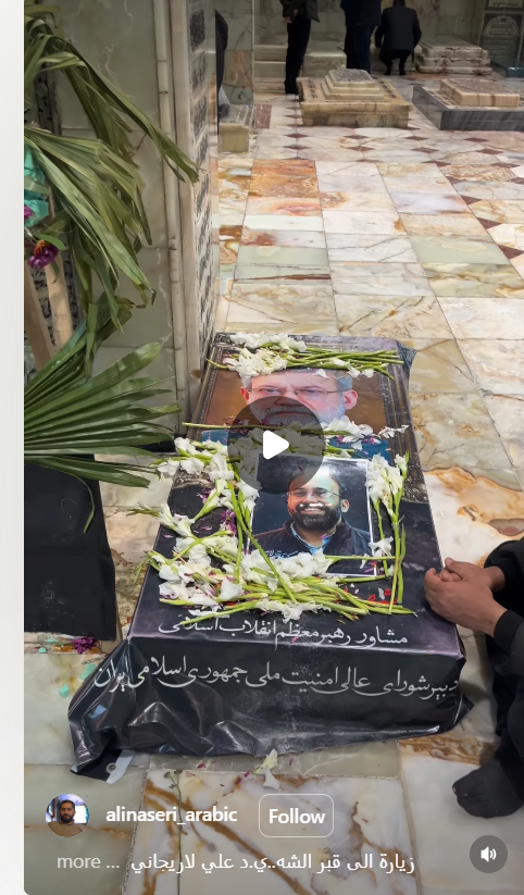 وبالبحث عن صور أخرى لقبر لاريجاني، تبين أن المكان في الصورة هو قبر علي لاريجاني بالفعل، والذي يقع في ضريح "السيدة معصومة" في قم، كما تظهر صورة نجل لاريجاني "مرتضى" على القبر أيضا.