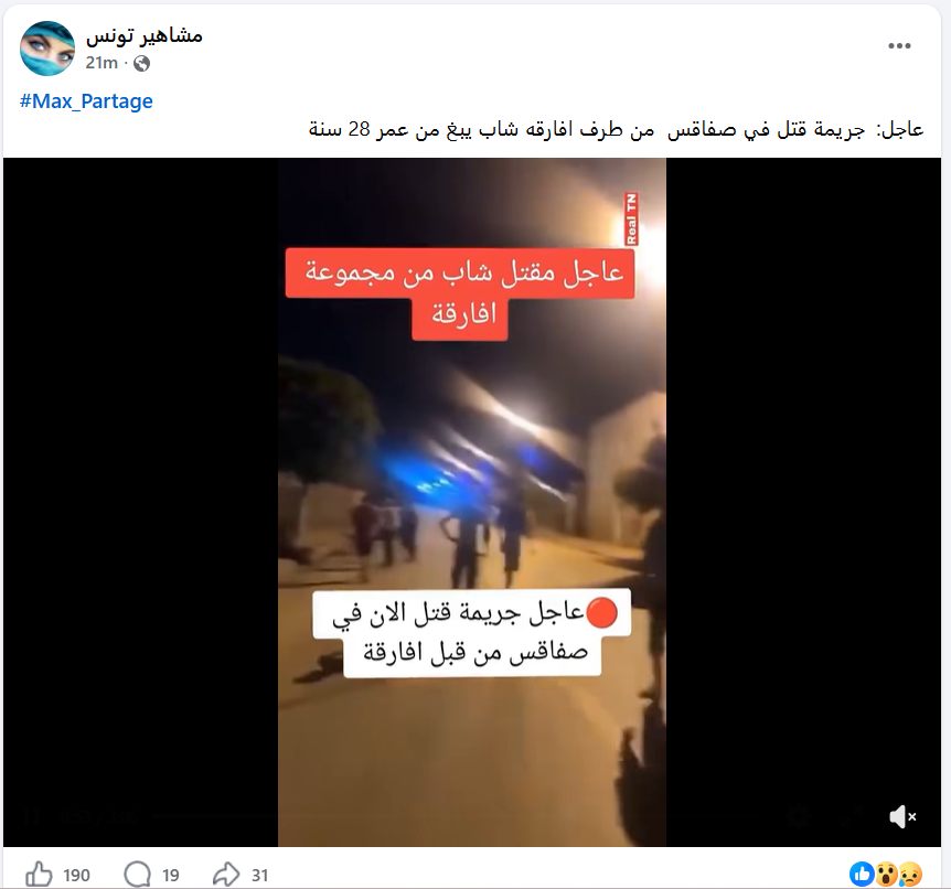 فيديو بعنوان: عاجل.. جريمة قتل في صفاقس من طرف أفارقة، شاب يبلغ من العمر 28 سنة.