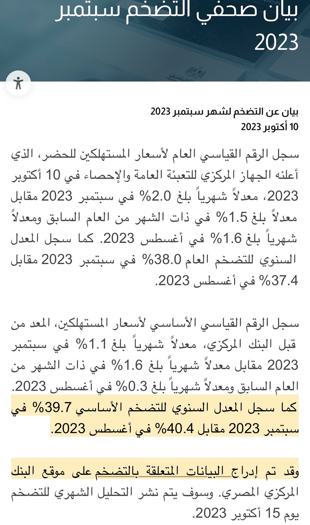 وكان قد وصل التضخم إلى 38% في ذروة التضخم في مصر في سبتمبر 2023، والذي استشهد به المدعي لإثبات ادعائه، حسب ما جاء في بيان صحفي للبنك المركزي المصري، عن التضخم في سبتمبر 2023.
