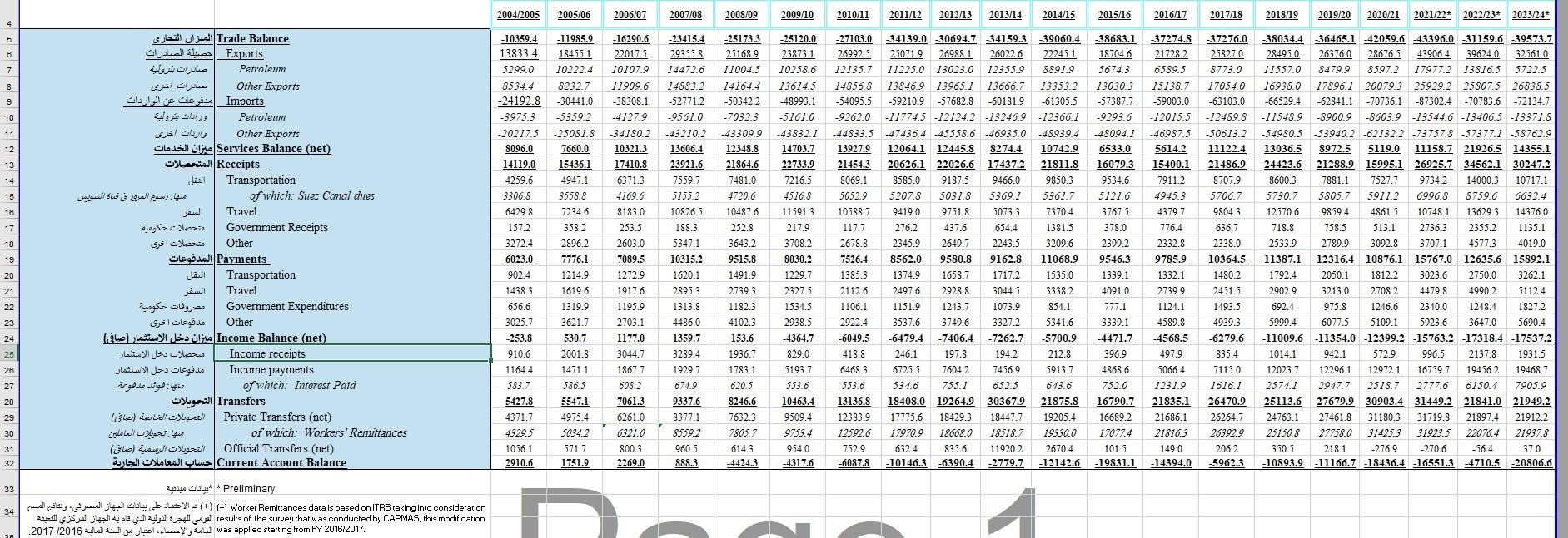 وأظهرت بيانات ميزان المدفوعات الصادرة عن البنك المركزي للسنوات المالية التاريخية، أن متحصلات مصر الدولارية خلال عام 2013 كانت تسير بشكل طبيعي مقارنة بما قبلها وما بعدها، دون ملاحظة أي انخفاض قوي في الدخل يهدد الدولة بالإفلاس.