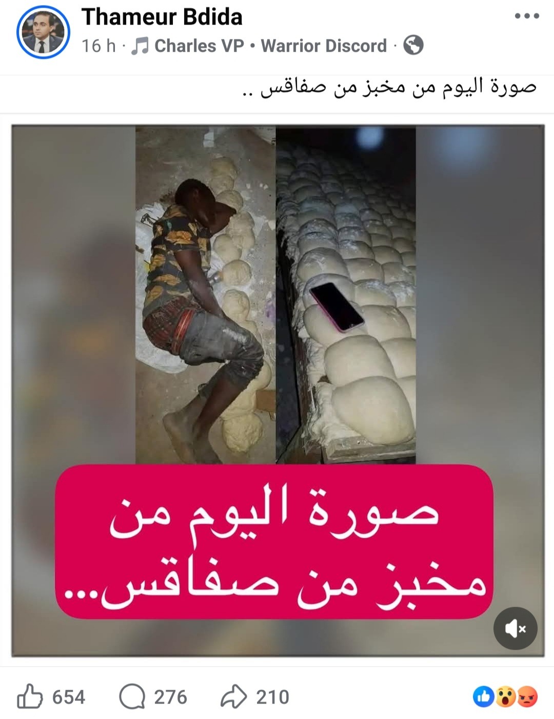 تتبع فريق “تفنيد” الادعاء الذي تداولته حسابات على منصة فيسبوك، بتاريخ 21 أبريل 2026، حول صورة عامل من المهاجرين الأفارقة وهو يستلقي على العجين في إحدى مخابز ولاية صفاقس، واتضح أنه “مضلل”، وذلك من خلال البحث العكسي عن الصورة.