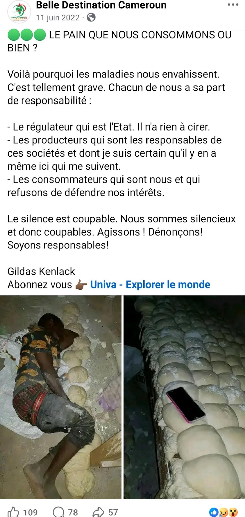 واتضح أن الصورة ليست من تونس وإنما من دولة الكاميرون، وظهرت للمرة الأولى على شبكة الإنترنت بتاريخ 11 يونيو 2022، على صفحة فيسبوك باسم "Belle Destination Cameroun" وهي صفحة متخصصة في السياحة في دولة الكاميرون، حيث نشرت الصورة بعنوان: "الخبز الذي نستهلكه أم ماذا؟ هذا هو السبب وراء غزو الأمراض لنا".
